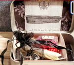 This Vampire set is enclosed in a repurposed embellished and glossed altoid tin that measures 3" x 2"